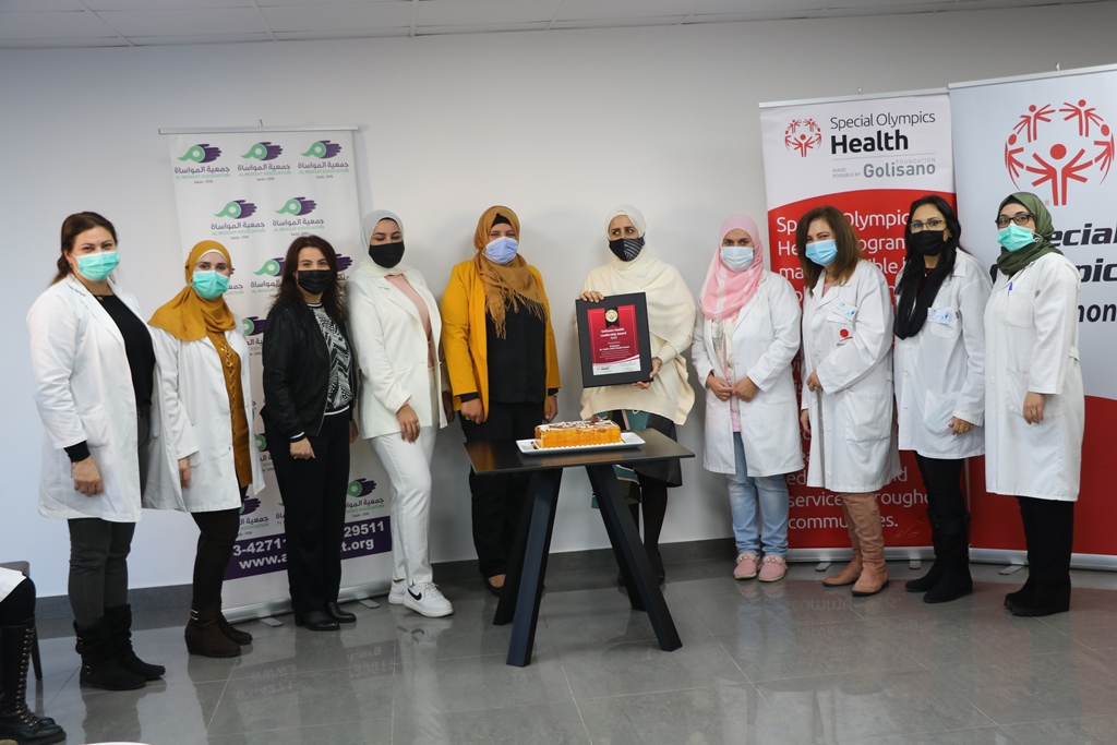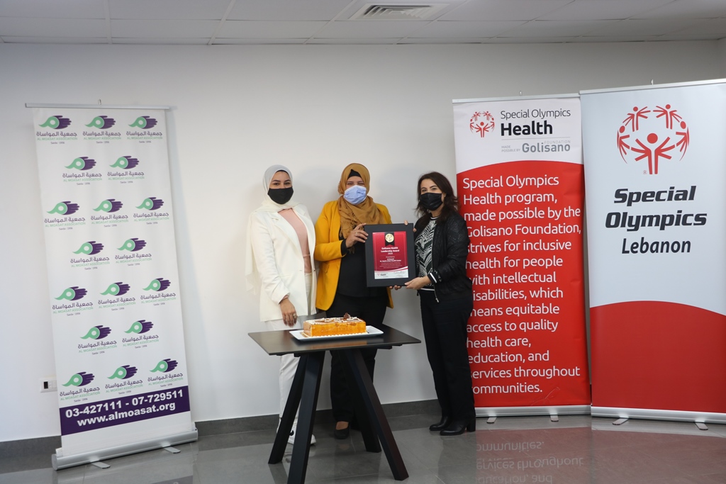 In honor and encouragement of the partners and supporters of the Lebanese Special Olympics Healthy Communities Program, the award was presented by the Director of the Healthy Communities Program for the Lebanese Special Olympics, Amina Al-Masry, to the Director of Al Moasat Association May Hasbini, and the Supervisor of the Health Center in the Association Lama Abu Zaher.